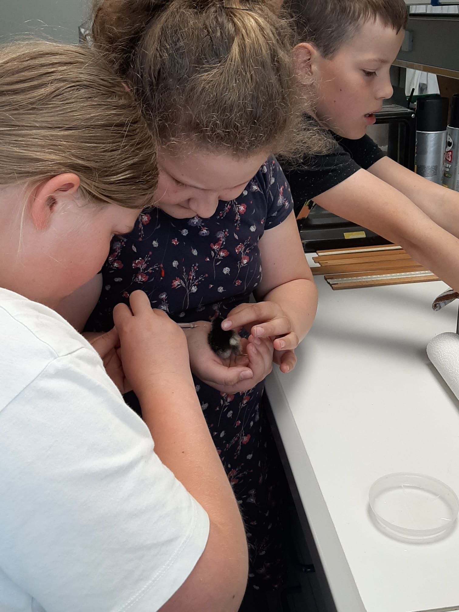 Leider hat nur eine überlebt. Unsere drei Wachtel-Pfleger waren sehr traurig, aber auch froh, dass sie wenigstens eine Wachtel vor dem Tod bewahren konnten.
